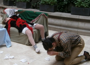 La comida deliciosa como siempre. De entrada una ensalada de queso de cabra frito con arándanos y aderezo balsámico de cítricos seguida de un aguacate relleno de angulas. De plato fuerte comimos un riquísimo lomo de cerdo relleno de frutos secos en salsa de nuez y de postre profiteroles de mouse de chocolate en crema inglesa.